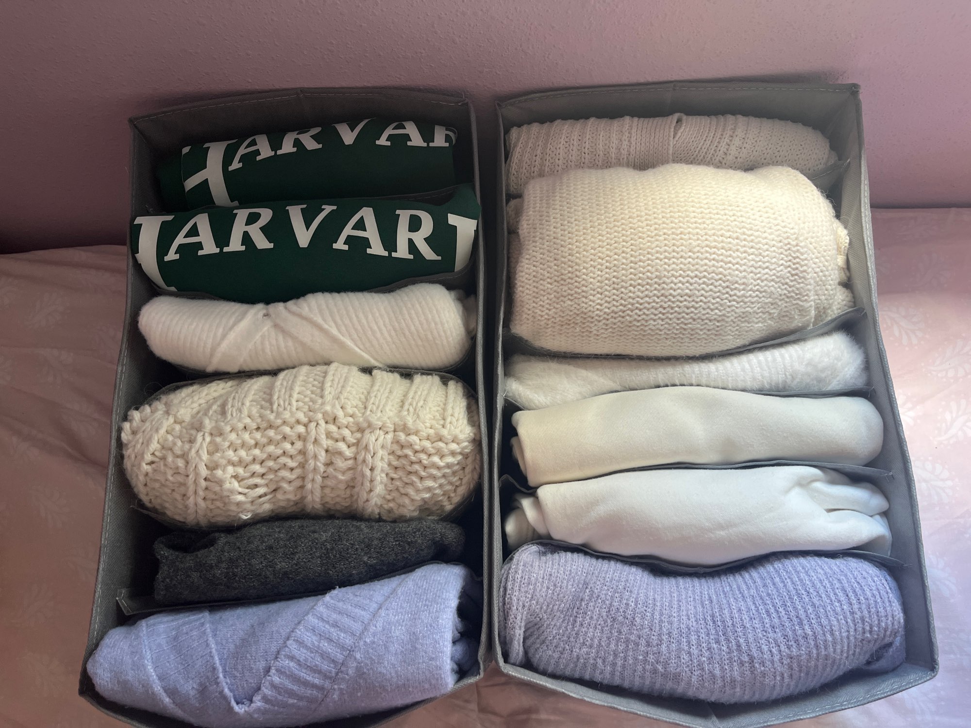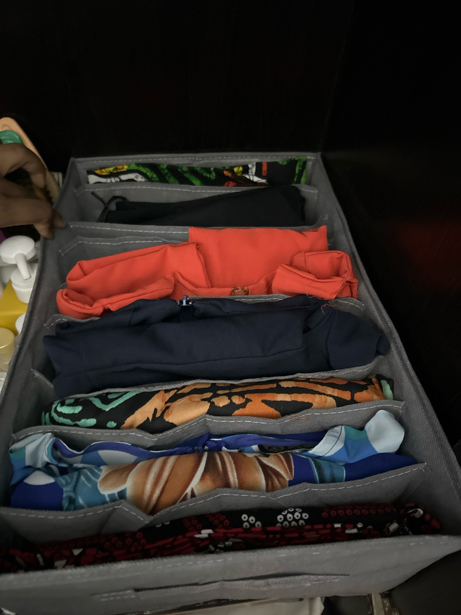 I cost to find an organizer with rigid sides, this one is super good, and in fact I fit 2 pants per compartment
