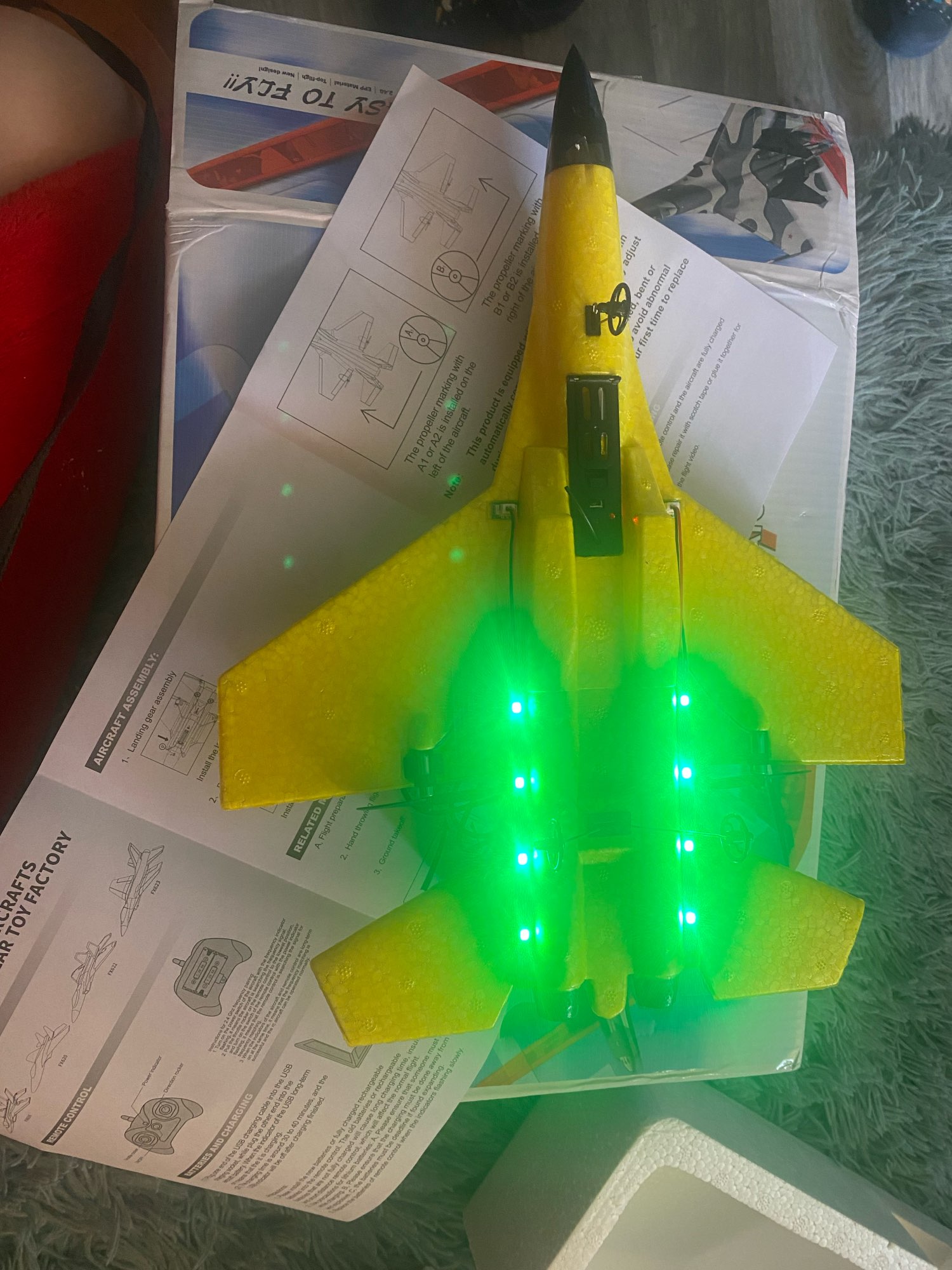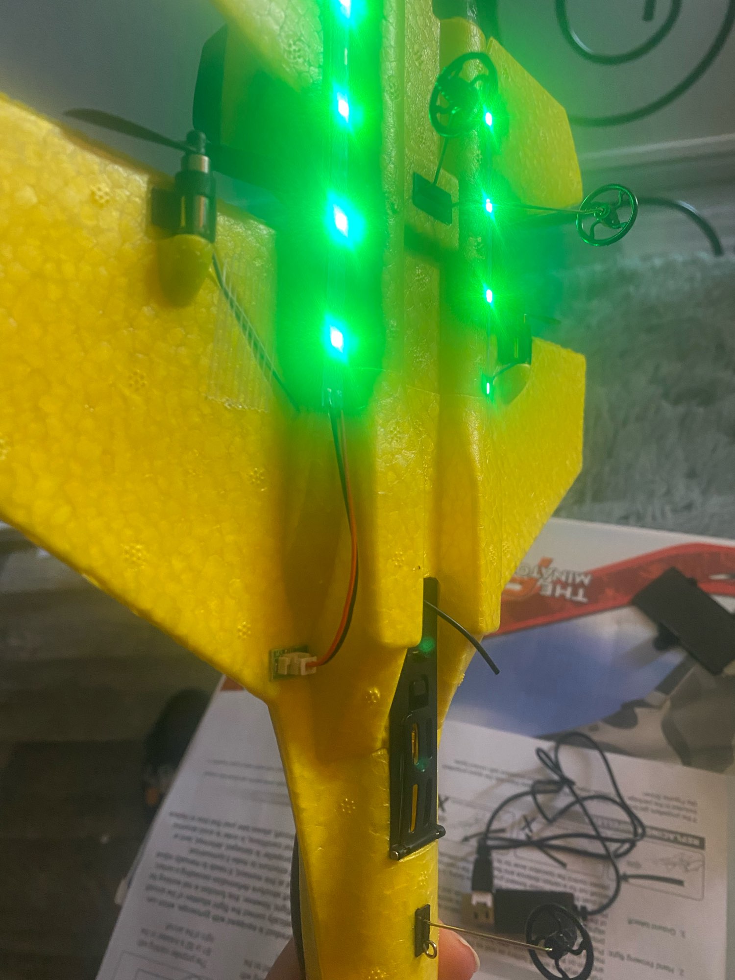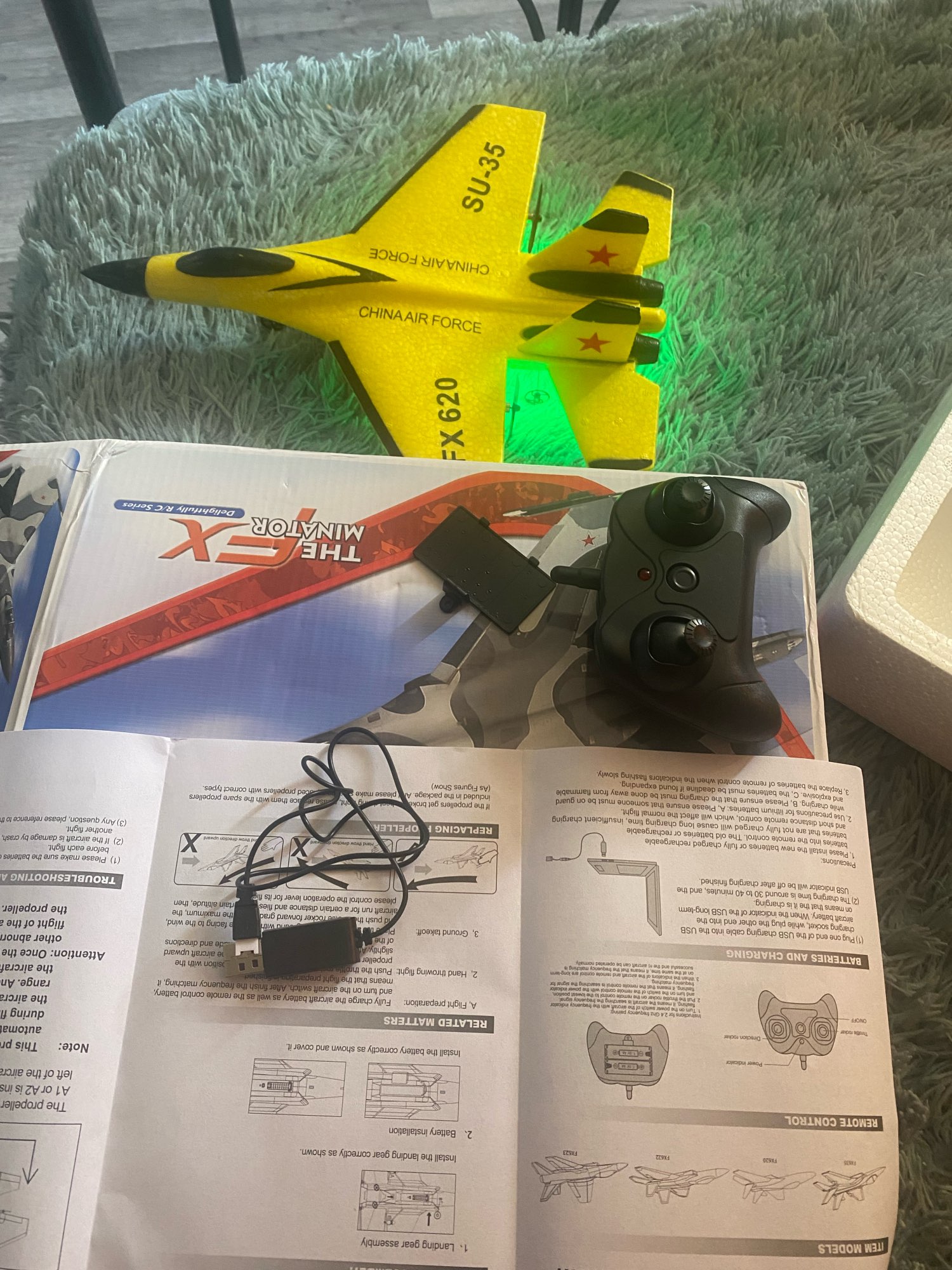 A very cool plane. But there are nuances that you should know about. You need to start only with a sharp throw from the hand, while first turning on the thrust at full power. Wheels can not be installed because they are designed only for a perfectly flat surface. It is only necessary to run into calm conditions because the thrust of the motors is weak and cannot cope with the strong wind. I was very pleased with the charging cable. It is on USB, so you can charge right on the field out of pocket by having a powerbank. Full charge is enough for 10-15 minutes of flight. Also pleased with the availability of spare propellers. Will be attentive. After landing, check for propellers. I almost lost one of them.