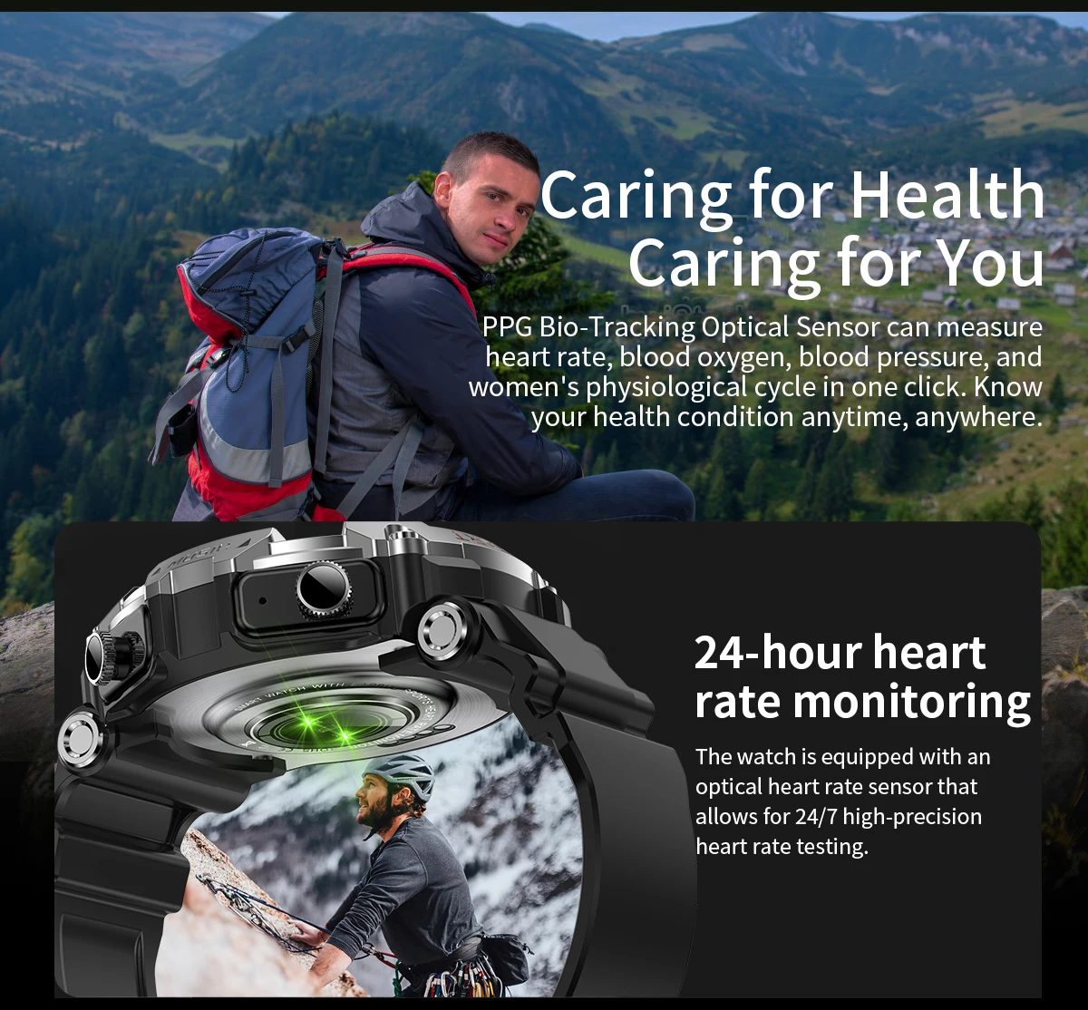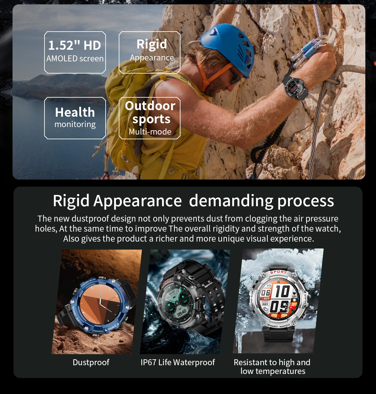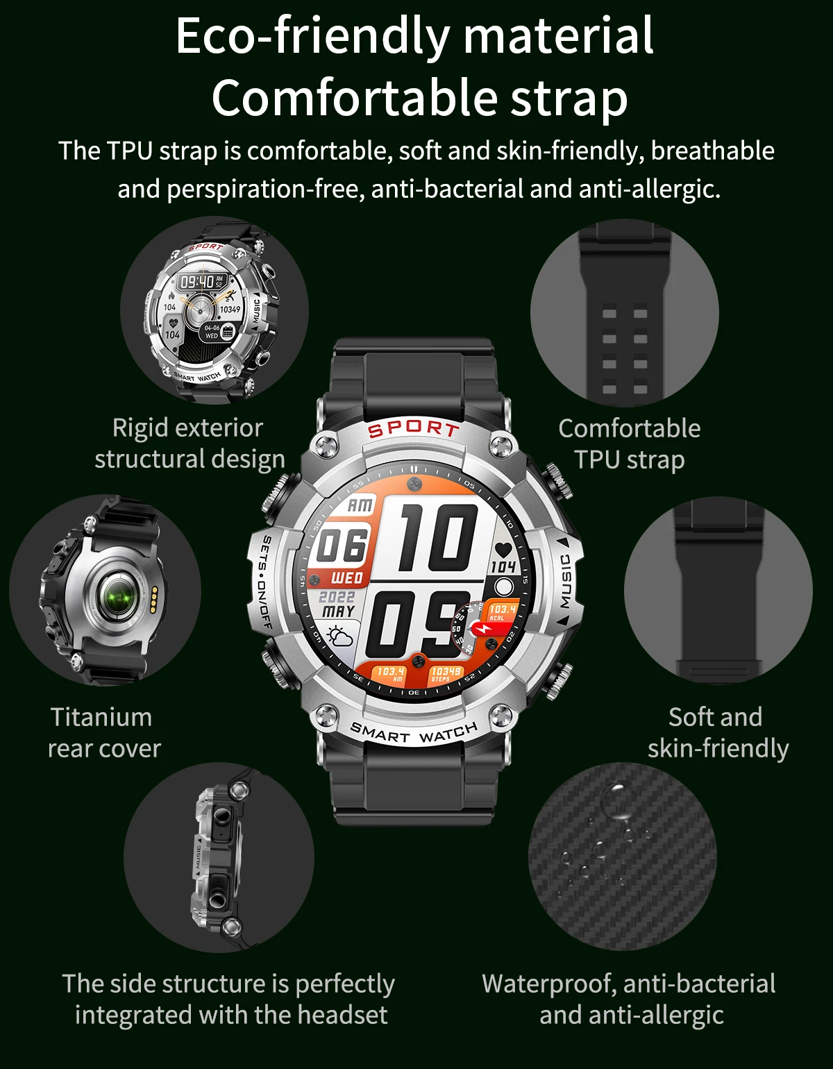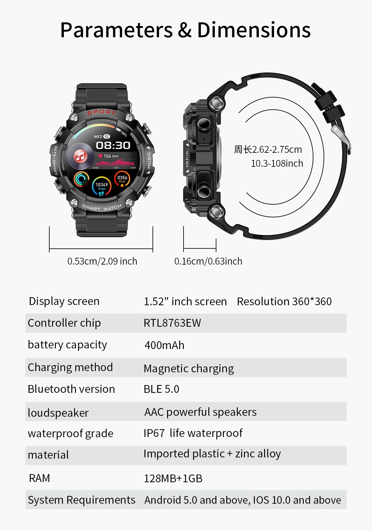 * Military appearance, metal process, TPU high-grade sports wind band, 1.52 inch full touch screen,mechanical button operation double operation